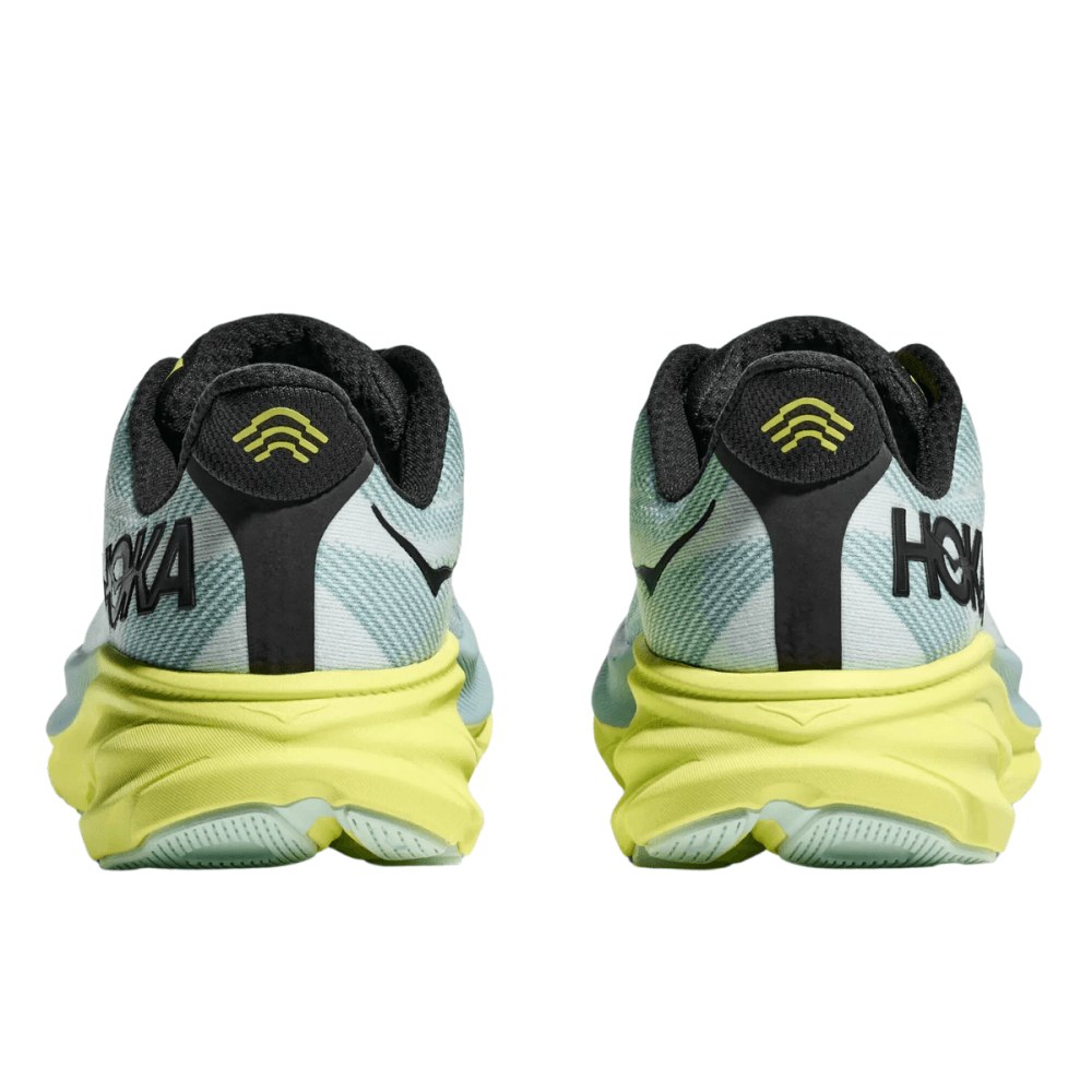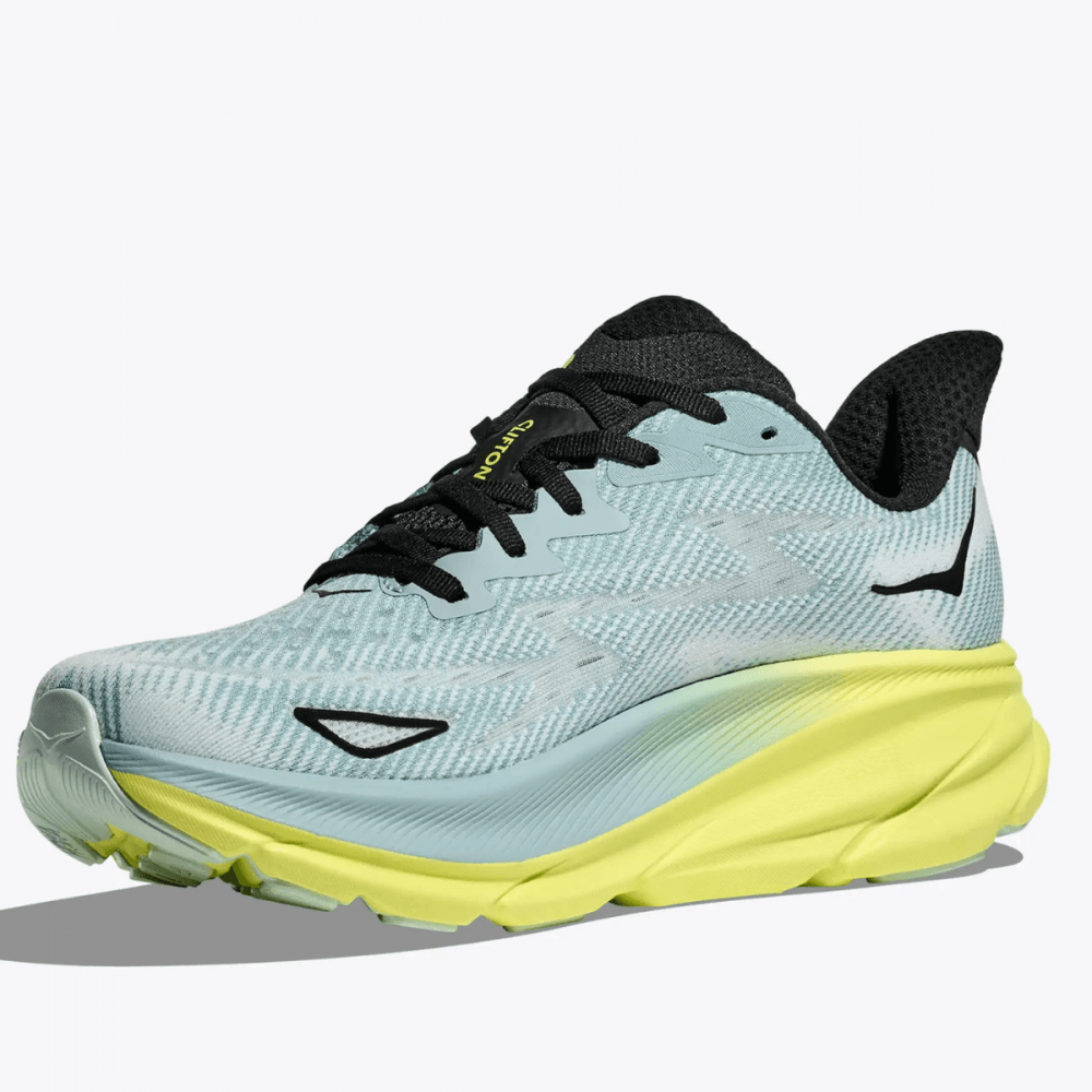 The men's Hoka One One Clifton 9 black running shoe brings performance for everyday miles. With new responsive foam underfoot for great bounce and cushioning to help drive forward. The upper is lightweight and breathable to ensure no distractions on your run.