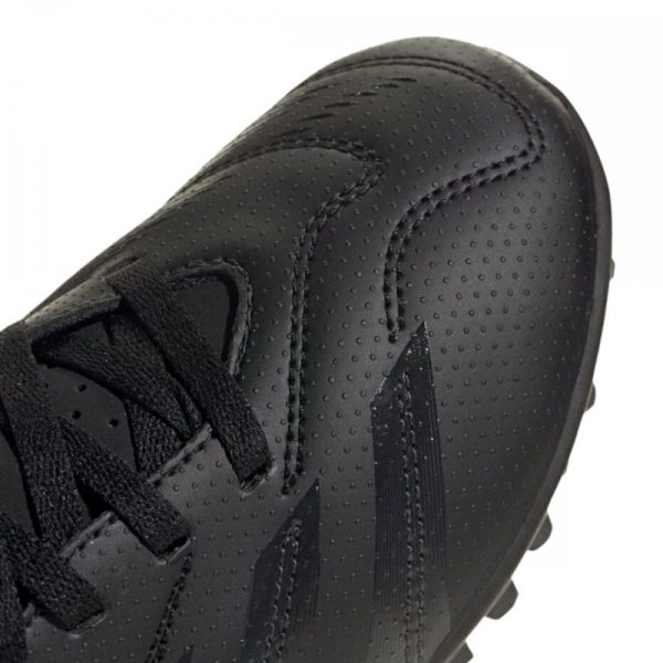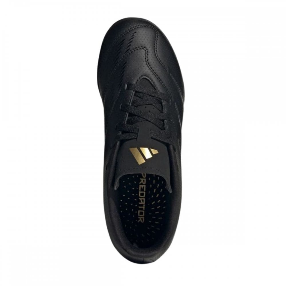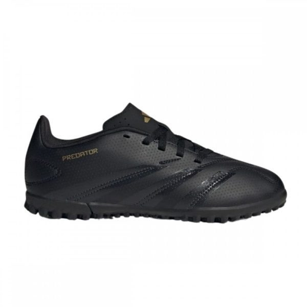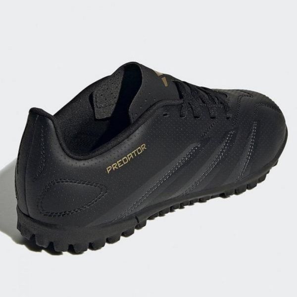 Get them ready to play with these children's Predator Club TF football boots by adidas. In a Black colourway with Gold accents, these boots have a durable synthetic upper with textured finish to help them control the ball. They have a tonal lace-up fastening for a locked-in fit, and sit above a lugged rubber outsole for essential traction on the turf. Finished with classic adidas branding throughout.