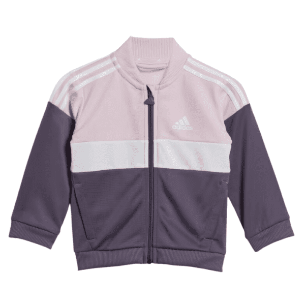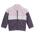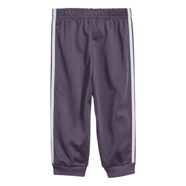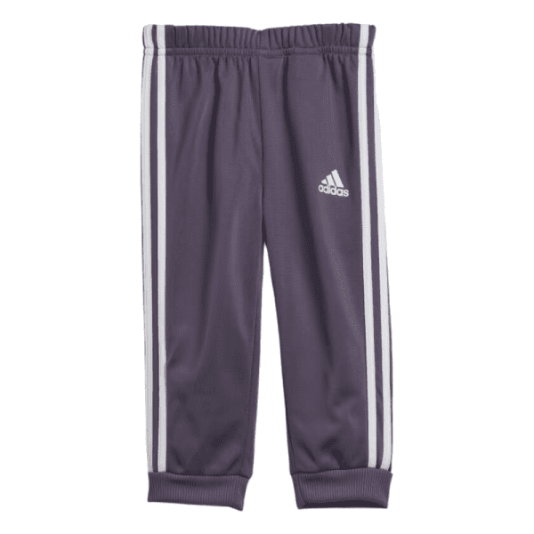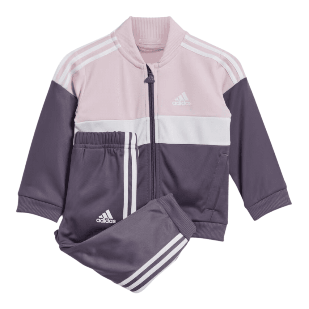 A sporty little track suit for big personalities. This infants' adidas track suit won't hold them back when it's time for toddlers to run, play or show off their dance moves. AEROREADY keeps them dry as they race around at full speed. The soft tricot fabric will keep them just as comfortable at nap time.