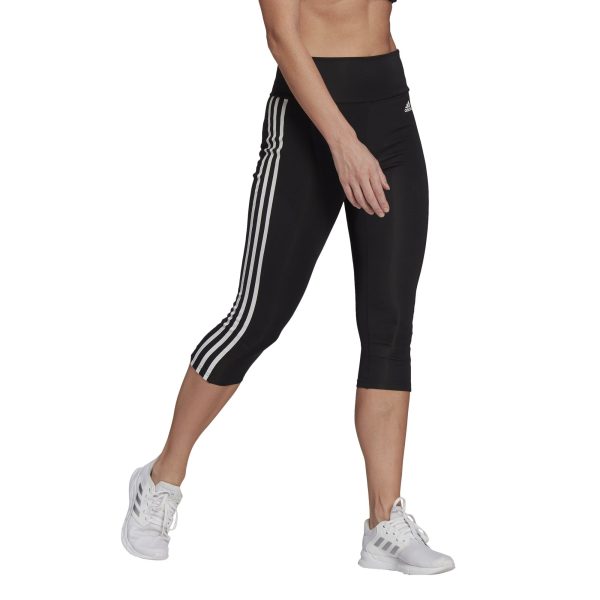Adidas Womens Designed 2 Move 3 Stripe High Rise 3/4 Leggings